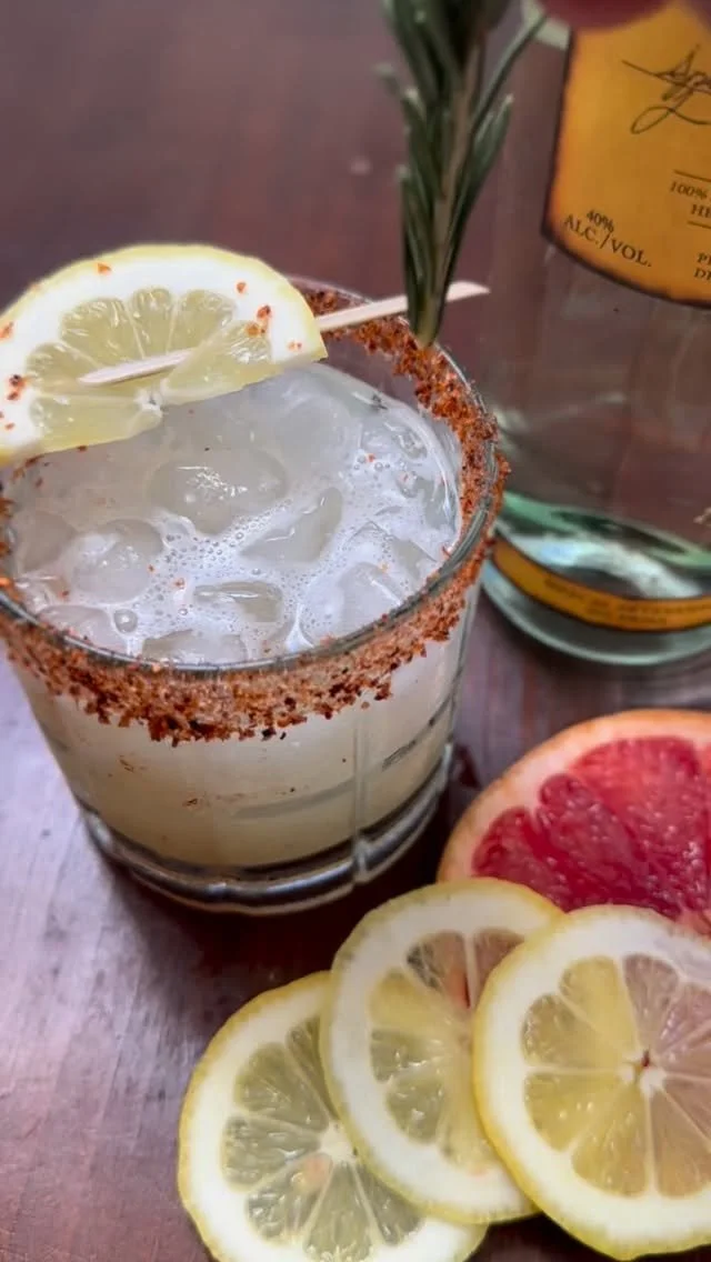 A mezcal-forward Lemon Daisy with smoky depth, bright citrus, a hint of fresh rosemary, and a smooth agave finish.